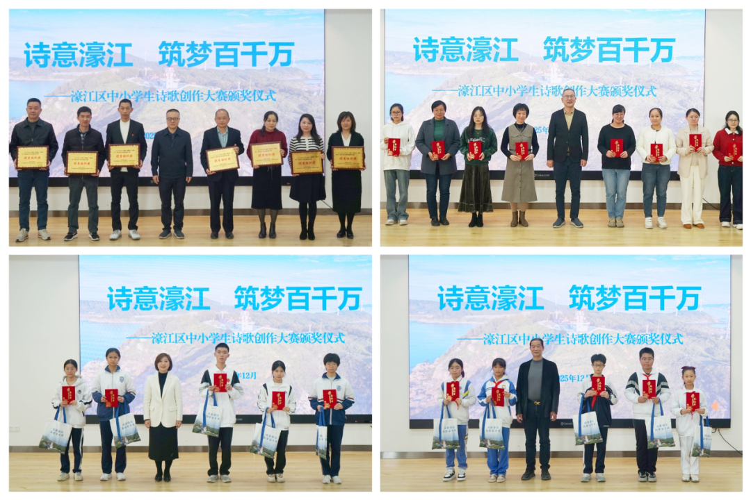 本次大赛以“诗意濠江 筑梦百千万”为主题,展示濠江区中小学生诗歌创作风采与美育成果,激发青少年文学创作热情,营造浓厚的校园文化氛围,展现“百千万工程”三年初见成效,助力“百千万工程”文化繁荣。大赛自启动以来,得到全区各中小学校的积极响应,广大青少年学生紧扣主题、巧思创作,涌现出一大批内容向上、富有灵气的优秀诗歌作品。据统计,本次大赛共收到参赛作品720余篇,经专业评审严格遴选,最终评出121篇获奖作品。其中评选出一等奖10篇(中学组和小学组各5篇)、二等奖20篇(中学组和小学组各10篇)、三等奖38篇(中学组20篇和小学组18篇),优秀奖53篇(中学组24篇和小学组29篇)。此外,还有91名教师荣获“优秀指导教师奖”,12所学校荣获“优秀组织奖”。